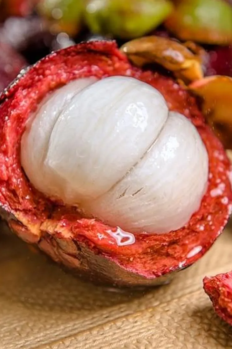 ■ 山竹有「果后」之稱,堅硬外殼下藏有白色一瓣一辦的果肉,雪白細嫩的肉質,甜蜜果汁中又帶有果酸滋味,整體的風味平衡的到好處。